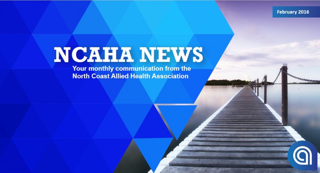 January 18, 2016 NCAHA Newsletter January 2016 NCAHA News is North Coast Allied Health Association’s monthly newsletter. It is published on the third Monday of each month and is provided electronically and free of charge. Click here to download this month’s edition.